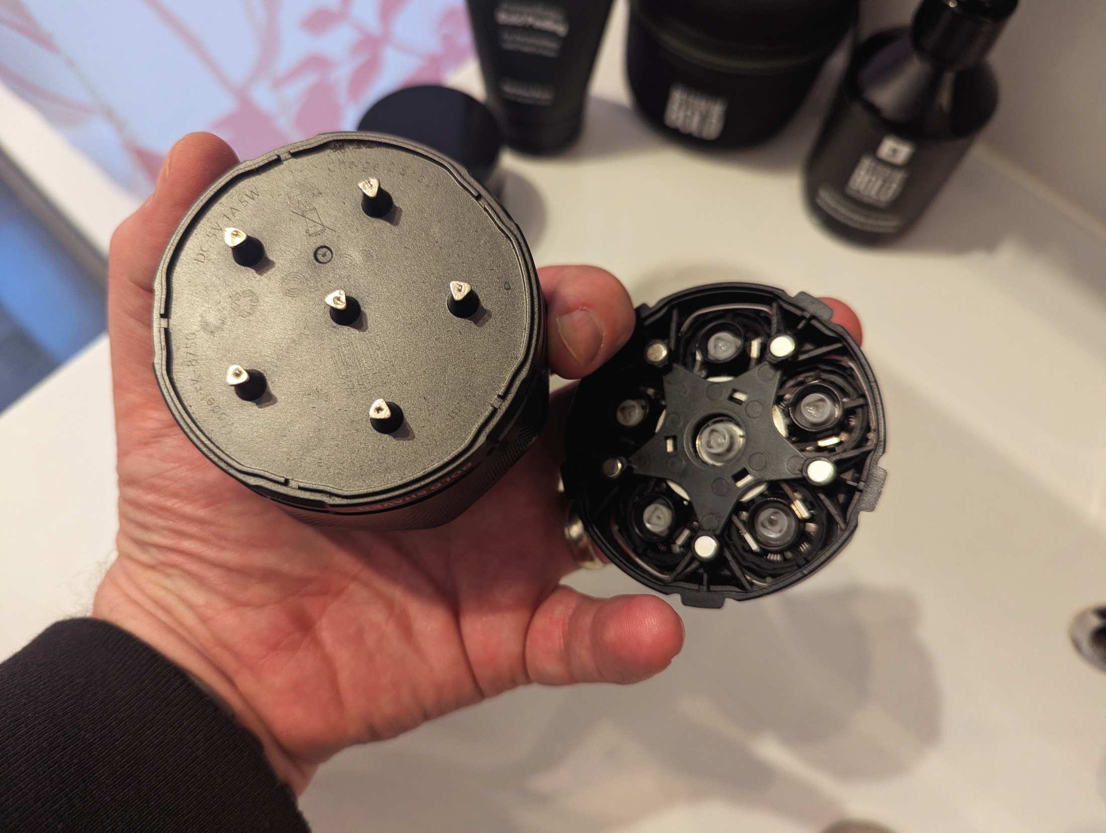 Die Haptik ist großartig, man spürt sofort die hochwertige Verarbeitung und dank seines durchdachten und griffigen Designs liegt der Rasierer erstklassig in der Hand und die Scherköpfe gleiten mühelos und sanft über den Kopf. Selbst etwas längere Haare, wo ich ansonsten erst den Bartschneider nutzen würde, entfernt der Rasierer mühelos. Kein Ziehen, kein Reißen, keine Hautirritationen. Definitiv die smarte Alternative zur Nassrasur mit der Klinge!