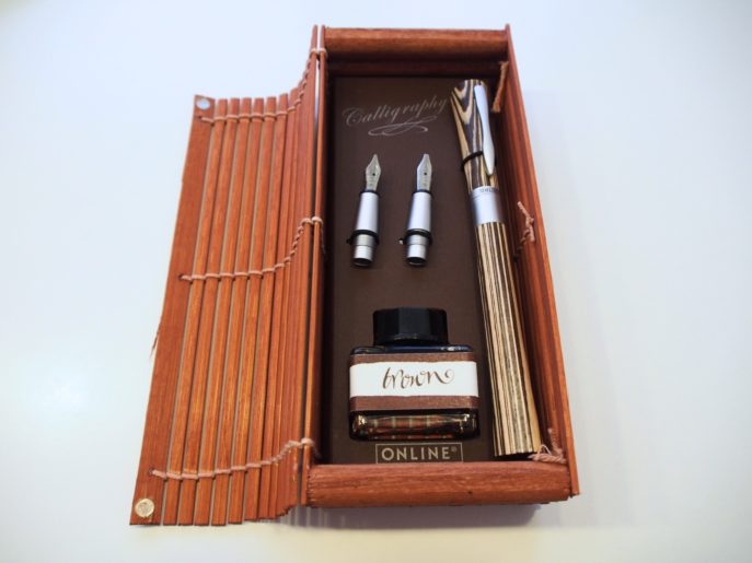 Im Set mit brauner Tinte, drei Mundstücken, dem Füller selber und einem Konverter hat man direkt alles, was man braucht, um schön zu schreiben. Gut, als Anfänger muss man natürlich etwas üben, Meister und Himmel… Ihr kennt das!
